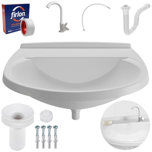 Pia lavatório banheiro 8l + torneira branca + sifão universal sanfonado + engate flexível + fita veda rosca Pia lavatorio banheiro plástico 8l branca astra A pia plástica para banheiro da marca astra é uma opção prática e funcional para instalação em ambientes com espaços reduzidos. Com dimensões compactas e design simples, é fabricada em polipropileno de alta qualidade, o que garante sua resistência e durabilidade. Com capacidade de armazenamento de 8 litros, essa pia é indicada para uso em banheiros e lavabos, sendo uma solução ideal para quem busca uma alternativa econômica e de fácil instalação. Além disso, sua superfície lisa facilita a limpeza e manutenção, permitindo que ela se mantenha higiênica e livre de germes e bactérias. Especificações técnicas Material: polipropileno Dimensões: 50 x 18,3 x 40cm Possui porta sabonete: sim Possui furo para torneira: não Capacidade: 8l Locais sugeridos: banheiros e lavabos Acabamento: brilhante Marca: astra Cor: branca Formato: oval do fabricante: 90 dias Torneira para lavatório plástica branca japi Especificações técnicas Composição: plástico de engenharia abs , polipropileno pp e elastômeros Utilização: água fria Fabricação: nacional Sifão sanfonado universal 61cm branco astra O sifão sanfonado universal astra é um acessório essencial de encanamento, projetado para se adaptar a qualquer saída de válvula de pia e a qualquer tubulação de esgoto, independentemente de seu tamanho ou tipo. Além disso, o sifão sanfonado universal astra corrige possíveis desalinhamentos entre a cuba e a tubulação de despejo, evitando assim a formação de bloqueios e obstruções que possam causar vazamentos ou refluxo de água suja. Especificações técnicas Material: polipropileno Entrada para válvula polegada : 7/8 Saída para tubos e conexões: 38, 40, 48 e 50mm Modelo: para pias, cubas, tanques, lavatórios e válvula americana Suporta temperatura até: 90 graus Cor: branco Acabamento: brilhante do fabricante: 90 dias Engate mangueira flexível para descarga 40cm x 1/2 branco astra Um engate flexível para descarga é um dispositivo para conectar um cano de esgoto ou uma mangueira de descarga a uma fonte de escoamento, como uma pia, banheira ou vaso sanitário. Ele é projetado para ser flexível, permitindo que ele se dobre e se mova sem quebrar ou vazar. Especificações técnicas Material: pvc flexível Temperatura indicada: somente água fria Pressão: 40 m.C.A Diâmetro: 1/2 Tipo de corpo: macho-fêmea e fêmea-fêmea Cor: branco Acabamento: brilhante do fabricante: 90 dias O kit segue com todos os itens para montagem e pronto para uso após a instalação A se aplica a todo e qualquer vício ou defeito aparente ou que não estejam em conformidade com o produto. - 90 dias para a pia plástica - 30 dias para a torneira - 90 dias para o sifão - 90 dias para o engate Itens inclusos 01 pia plástica 01 torneira 01 sifão 01 engate 01 rolo de fita veda rosca 12mm x 5m 01 suporte 01 válvula com tampa 04 buchas s8 02 parafusos 3,5 x 30mm 06 arruelas Marca: Não Informado