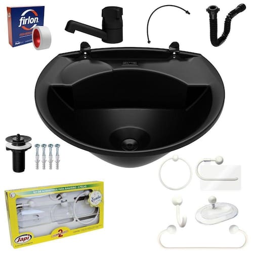 Pia Lavatório Banheiro Plástico 4L Preta + Kit Banheiro