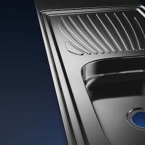 Sua construção sem soldas ou emendas e o escorredor integrado, que direciona a água para a cuba, evitam o acúmulo de sujeira, tornando a limpeza muito mais fácil.