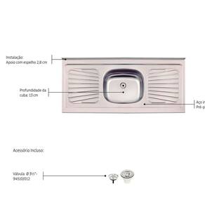 Para um dia a dia mais prático, a Tramontina oferece a Pia Tramontina Inox 120X52 Trata-se da solução completa para a sua residência ou empresa. Com 120x52 cm de tamanho e uma pia com 13 cm de profundidade e escorredor para louças, esta peça se adapta a todos os tipos de bancadas e se destaca pelo alto grau de acabamento, beleza e qualidade. Fabricada em Aço Inox 430 com acabamento pré-polido e 0,6 mm de espessura, a peça é inteiriça (sem solda), evitando pontos de corrosão e acúmulos de detritos.