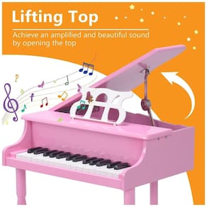 Informação do produto Cor: Rosa Marca: MEL ALEGRIA Material: Madeira projetada Tema: Música Dimensões do item CxLxA: 48,26 x 48,26 x 48,26 centímetros Faixa etária descrição: Criança Peso do Item: 8,16 quilogramas Instrumento: Piano Número de chaves: 30 Marca: Não Informado