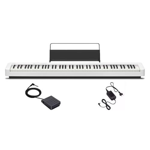 Piano digital compacto e portátil, ideal para músicos de todos os níveis. 88 teclas com ação de martelo e sensibilidade ajustável para maior realismo. Timbres de pianos acústicos e elétricos, polifonia de 64 vozes e efeitos digitais. Conexões para USB, pedal sustain e fones de ouvido. Alimentação por fonte bivolt inclusa. DESCRIÇÃO DO PRODUTO: Este piano digital é perfeito para quem busca praticidade e qualidade sonora em um design compacto. Equipado com 88 teclas de ação pesada, timbres versáteis e conectividade moderna, ele oferece tudo o que um músico precisa para estudos ou apresentações.