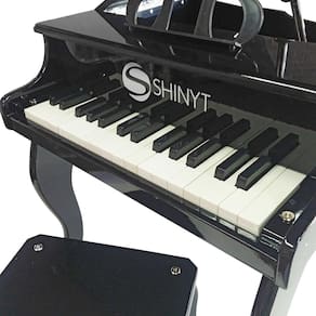 Com o Piano Infantil 30 Teclas Preto os pequenos poderão tocar e reproduzir os seus hits favoritos. Além de ajudar as crianças a desenvolverem as suas habilidades ou dom musical natural, também trabalham a coordenação motora, ajudam a desenvolver a noção de ritmo, sensibilidade tátil e sonora... é muita diversão aliada a aprendizado.O design do brinquedo é totalmente pensado e voltado para se adaptar aos pequenos, oferecendo uma experiência única, que promove o sentido de independência ao segurar, tocar e manusear sozinho o brinquedo que se adapta ao seu tamanho e porte.Características- Instrumento acústico- Piano de Cauda Tamanho Infantil- Produto de Altíssima Qualidade - Todo construído em madeira, com acabamento laqueado de alto brilho, acompanha banqueta. - O Piano é super resistente, todas as travas são feitas em parafusos e buchas em aço!- 30 Teclas = 2 Oitavas e meia - Indicado para crianças de 3 a 8 anos MEDIDAS DO PIANO MONTADO:- 50 cm de altura- 52 cm de largura- 50 cm de comprimento- Peso do produto:10,50 Kg- Um piano com 30 teclas e 1, desmontados e acondicionados em caixa de papelão nas medidas 61X58X23 cm.- Banquinho com as medidas 27cm comp. x 20 cm altura x 17 cm largura.- Montagem fácil e rápida.Especificações:Fabricante: Shiny ToysRef.: 000291Cód. Barras: 7898638890666Idade recomendada: +06 anos.Dimensões da embalagem (AxLxC) 49 x 47 x 48cm Dimensões do produto montado (AxLxC) 61 x 58 x 23cm Peso:10kgGarantia do vendedor: 7 diasGarantia do fabricante: 3 meses