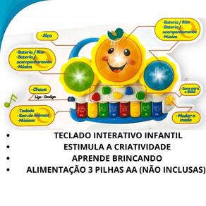 Com teclas iluminadas, sons de animais e músicas divertidas, o piano traz muita alegria e aprendizado para o dia a dia dos pequenos. Ideal para o desenvolvimento sensorial e musical desde cedo, é um brinquedo que une diversão e aprendizado em um só produto.