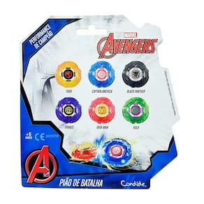 PIÃO INFINITY NADO - AVENGERS - Piões para combate com alta performance em 2 sortimentos com acabamento em plástico flexível. Acompanha ferramenta, corda e lançador.