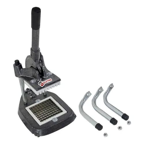 Picador de legumes médio Marca: kd eletroMaterial - corpo: alumínio fundidoBasculante: alumínio fundidoColuna tubo de aço carbono zincadoPés em tubo de aço carbono zincadoPintura: eletrostática a pó Facas: aço inox 10 mmPonteira dos pés e coluna de pvcManupla e plasticoDimensões do produto:Largura: 27 cmAltura: 41 cmComprimento: 38 cmPeso: 2.200 kg