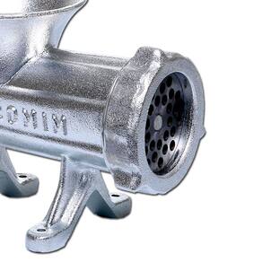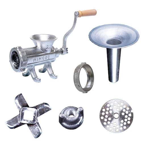 O moedor de carne manual grande n° 22 da Mimoso é de fácil manuseio. Ele possui sistema de fixação prática que permite travar o moedor de carne em qualquer superfície plana. É uma máquina de moer carne prática, segura e higiênica. Suas peças podem ser desmontadas e lavadas O picador de carne grande n° 22 é semiprofissional e também indicado para moer legumes, milho verde e outros alimentos. Material : ferro fundido com acabamento estanhado. Conjunto formado por: corpo, disco perfurado 8 mm, rosca, anel rosqueado, porca borboleta, manivela com cabo. Acionamento manual Utilizado: moer carnes,legumes, milho verde, aipim, bacalhau, palmito, caju e outros alimentos. Manivela comprimento 27 cm. Abertura Entrada oval 110 x 130 mm, abertura de saida diâmetro 76 mm.