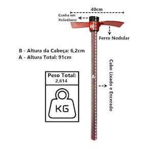01 Picareta Chibanca Cabo de Madeira Encerado Cunha Polietileno.