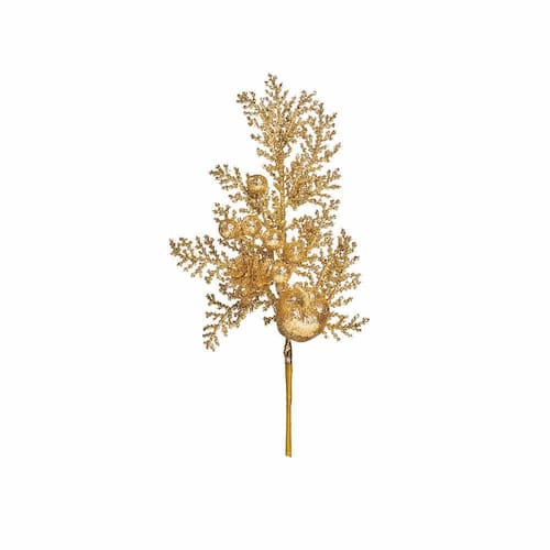 Pick De Galhos, Berrys E Maça Em Glitter Ouro - Composição/Matéria Prima - 50% Plástico 25% Isopor 20% Metal 5% Papel - Cor Predominante - Ouro - Cod. Cromus - 1694886 - Instruções Adicionais e Limpeza - Limpar com espanador