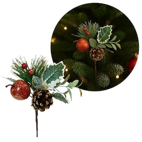 Leve mais brilho e sofisticação para sua decoração natalina com este pick decorativo de folhagem, pinha e fruta com glitter dourado!
