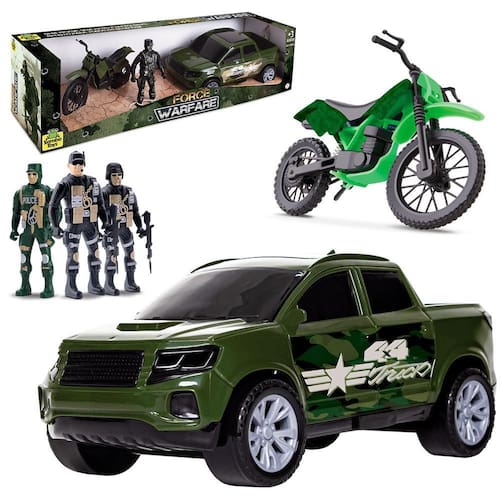 Carro pick-up roda livre force warfare com boneco + moto na caixa Código 1228306