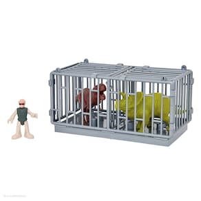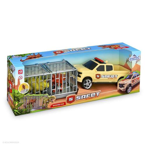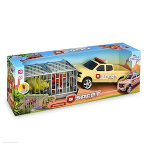 Neste kit fantástico acompanha: 1 pick up com 1 jaula com dois compartimentos individuais e mais dois dinossauros pra se divertir.