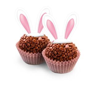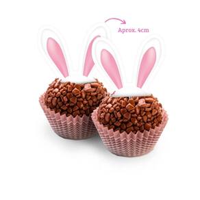 Este pacote contém 8 picks de papel com orelhinhas de coelho em tons de chocolate, perfeitos para decorar cupcakes, bolos, docinhos e outras delícias da sua festa de Páscoa.