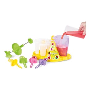 Muito divertida, este brinquedo conta com 4 palitinhos coloridos laváveis, forma e copo misturador. É só misturar frutas com iogurte ou suco! Fazer picolé virou brincadeira!