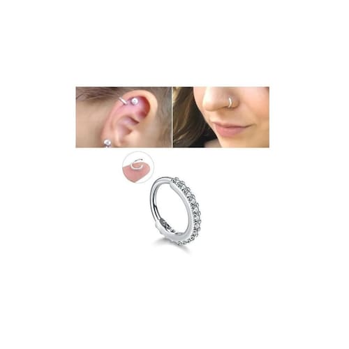 Piercing argola prateado com pedras de zircônia. Tamanho 6 mm de diâmetro interno. Valor para 1 peça, não é o par Atenção: esta peça não é para uso contínuo. Para usar regularmente adquira uma peça em aço cirúrgico. Esta peça é para uso esporádico Utilize esta peça somente se o seu furo estiver completamente cicatrizado. Atenção: Tenha a tranquilidade de que não revendemos produtos que já foram colocados por outra pessoa, portanto, ao receber o seu pedido, verifique se recebeu corretamente antes de romper o lacre Trata-se de uma medida de segurança para os nossos clientes, pois essas peças não podem ser revendidas após a devolução, por questão de saúde pública. Por isso, aceitamos a devolução somente se o produto estiver na embalagem lacrada. Enviamos o produto em embalagem lacrada transparente para que o comprador possa ver o produto sem precisar retirar da embalagem lacrada. Se você retirar do lacre não adianta abrir reclamação, ou deixar avaliação negativa, pois jamais venderemos para nossos clientes um produto Utilizado se retirar do lacre não aceitamos devolução, por respeito aos nossos clientes Marca: Não Informado