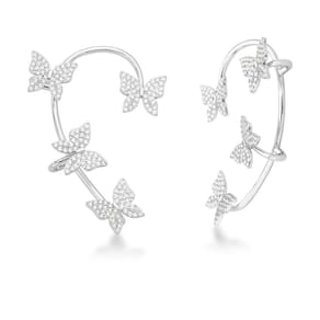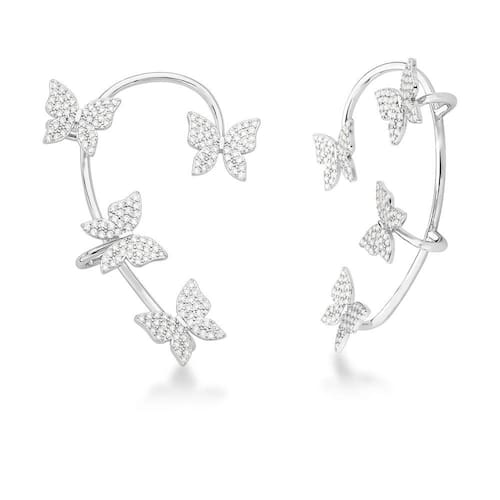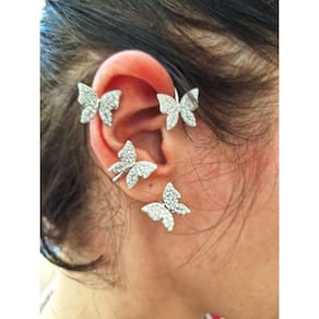 Piercing de orelha com quatro borboletas cravejadas de zircônias brancas banhado a ródio.