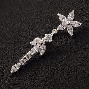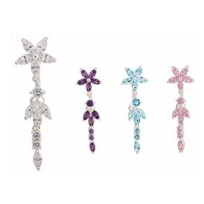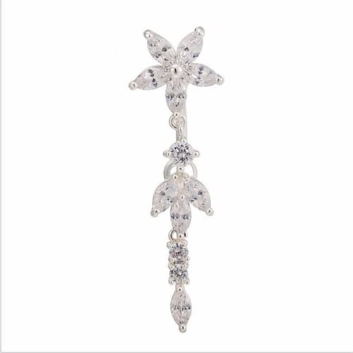 Piercing De Umbigo Prata Pendurado Flor Invertido Zirconia