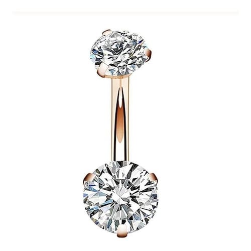Piercing de umbigo em aço cirúrgico 316l revestido em ouro rosê.
