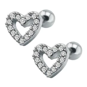 Piercing tragus para cartilagem com pedra de zircônia em formato de coração. Material: Aço cirurgico. Tamanho do coração de pedras: 6 mm Valor refente à 2 peças. Marca: De Castro Joias Ean: 7893024860247