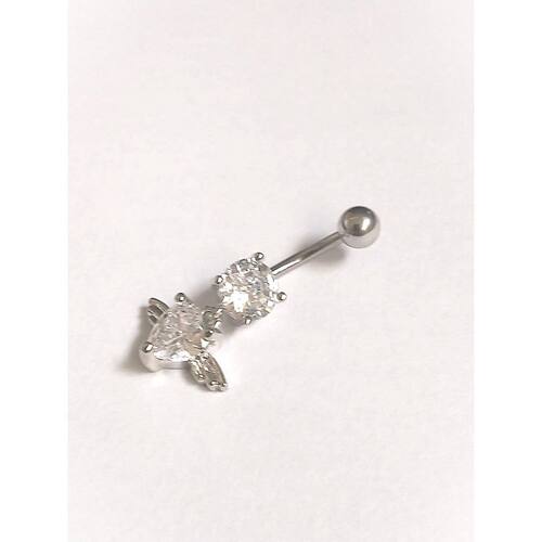 Piercing umbigo aço cirúrgico coração aladado zirconia Piercing Umbigo Coração Aladado: Aço Cirúrgico e Zirconia de Alta Qualidade
