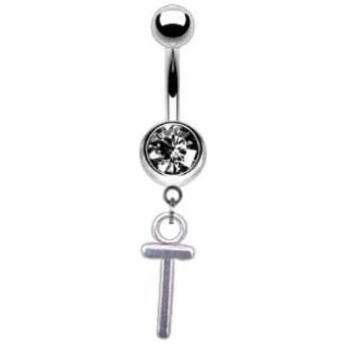 Piercing Umbigo Letra Inicial Nome Prateado Modelo,: T Caso deseje outra letra que esteja fora das opções entrar em contato antes de efetuar a compra para saber se existe a disponibilidade.