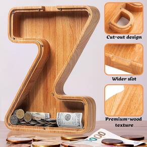 Cofrinho para crianças meninos meninas, cofrinho grande de madeira personalizado com design recortado, cofrinhos de moedas de letras do alfabeto, caixa de economia de dinheiro, banco de madeira para crianças presente criativo para dinheiro real - Ótima surpresa para as crianças: cofrinhos extra grandes de 30,5 cm com design recortado, espessura de 4 cm de espessura. A capacidade extra grande traz mais possibilidades para as crianças economizarem dinheiro. Este presente deve trazer surpresas e prazeres para eles, eles podem planejar suas metas de economia desde tenra idade, fundo de viagem, fundo de sonho e assim por diante... - Presentes exclusivos, nome faça você mesmo?: este cofrinho de alfabeto de tamanho grande o torna diferente, e as crianças podem escolher um cofrinho inicial com base no primeiro nome ou sobrenome das iniciais. O pacote contém um conjunto de adesivos de alfabeto a laser DIY para fazer o nome do seu filho brilhar na caixa de dinheiro. - Materiais e artesanato: os frascos de economia de letras extra grandes são feitos de madeira 100% orgânica. Cada banco de letras de madeira foi polido mais de 10 vezes, feito de madeira de carvalho premium, é mais resistente e durável, pode estar em boas condições para um uso prolongado e tem excelente artesanato e design! - Fácil de abrir, transparente - Desparafuse e remova o vidro para remover as moedas. A tampa de vidro acrílico transparente permite ver através da moeda dentro e avaliar o progresso de economia de dinheiro. Não há necessidade de quebrar, pode ser reaproveitado por um longo tempo! - Melhor serviço da Sulevalt: nossa nova marca Sulevalt oferece 100% de garantia de qualidade para fornecer aos clientes produtos de alta qualidade e uma boa experiência de compra é o nosso objetivo, se você tiver alguma dúvida, a tempo!