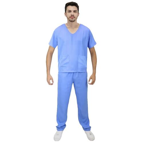 O uniforme cirúrgico é confeccionado em tecido OXFORD, que é conhecido por sua durabilidade e resistência, proporcionando uma barreira eficaz contra fluidos, mantendo a integridade e a higiene durante os procedimentos, além de ser um material facilmente higienizado.