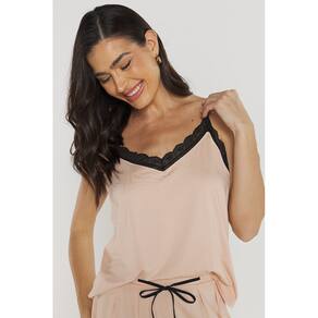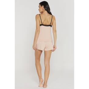 Pijama Curto de Alça com Renda e Amarração no shorts Bege Essencial - 700.460