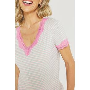 Pijama Feminino Curto Tricot Kawai com Renda Rosa - G - 700.345