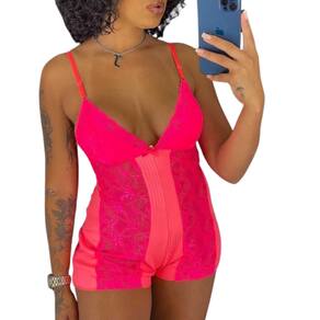 Um macaquinho de lingerie rendado com fecho nas costas é uma peça feminina e sensual que combina conforto e sedução. Feito em renda delicada e macia, o macaquinho possui um design elegante, com alças finas ajustáveis e decote em V, realçando o busto de forma delicada.