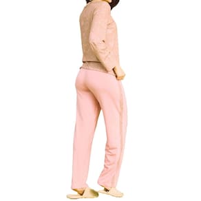 Aqui temos uma peça para ser usada em um momento de descanso o Pijama Feminino Longo Coração Gola Careca Calça com Bolso tem em sua composição 96% viscose e 4% elastano na cor: Rosa e nos Tamanhos P, M, G e GG.
