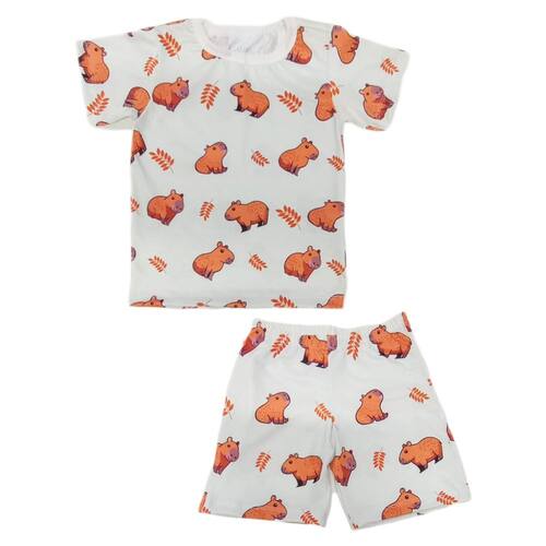 Pijama Infantil Manga Curta Estampa Capivara.