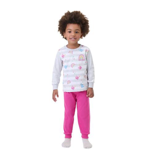 Pijama Infantil Menina Longo Pink Estampado Brilha no Escuro - Encanto e conforto na hora de dormir. Pijama em meia malha 100% algodão com estampa fofa que brilha no escuro.