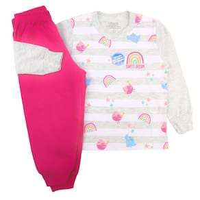 A estampa fofa de passarinho e arco-íris brilha no escuro, tornando a hora de dormir ainda mais mágica. A blusa de manga longa com punho mantém o corpo aquecido, enquanto a calça oferece um ajuste confortável, permitindo liberdade para brincar e descansar.