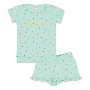 Para manter as noites quentes mais fresquinhas e divertidas! Pijama composto por blusa e short meia malha na cor rotativa tiffany com estampa divertida e escrita frontal em foil "durma todo dia, toda toda a noite." a Blusa possuí gola redonda, manga curta e modelagem soltinha, já o short possuí babados na barra e elástico na cintura para maior conforto durante a noite.