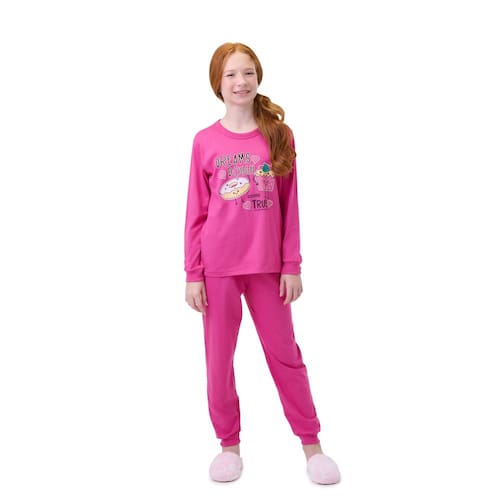 Pijama Juvenil Menina Pink Dreams Brilha no Escuro Algodão - Estilo e conforto para noites aconchegantes! Pijama em meia malha 100% algodão com estampa que brilha no escuro.
