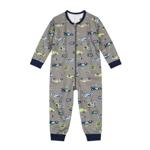 Para noites divertidas e aquecidas, aposte no pijama macacão infantil menino Brandili confeccionado em moletom com pelúcia interna, a peça conta com mangas longas, estampa rotativa, punhos e barra ajustados e fechamento frontal por zíper. Seu pequeno vai amar!
