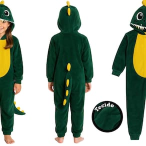 Palavras-chave: Macacão infantil, fantasia dinossauro, pijama fleece, roupa infantil quentinha, fantasia infantil, pijama soft, macacão verde dinossauro.