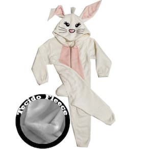 Este lindo macacão possui detalhes encantadores como o capuz com rosto de coelhinho e orelhas caídas naturalmente pela gravidade, além de um adorável pompom traseiro, que imita um rabinho, dando ainda mais charme à peça. Seu zíper frontal facilita vestir e retirar, trazendo praticidade para o dia a dia das crianças.