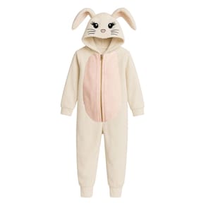 Este lindo macacão possui detalhes encantadores como o capuz com rosto de coelhinho e orelhas caídas naturalmente pela gravidade, além de um adorável pompom traseiro, que imita um rabinho, dando ainda mais charme à peça. Seu zíper frontal facilita vestir e retirar, trazendo praticidade para o dia a dia das crianças.