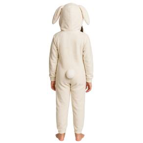 Este lindo macacão possui detalhes encantadores como o capuz com rosto de coelhinho e orelhas caídas naturalmente pela gravidade, além de um adorável pompom traseiro, que imita um rabinho, dando ainda mais charme à peça. Seu zíper frontal facilita vestir e retirar, trazendo praticidade para o dia a dia das crianças.