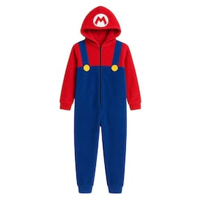 Inspirado no lendário personagem Mario Bros, este macacão possui detalhes incríveis como suspensórios decorativos com botões amarelos, além do capuz estilizado com a letra "M" em destaque. As cores vibrantes azul e vermelho completam o visual característico deste querido herói, ideal para festas temáticas, eventos ou simplesmente como pijama super divertido.