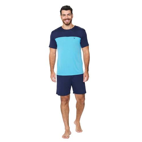Pijama Masculino Curto Poliamida Listrado Vd Pantano - 268013 - Azul Marinho - P