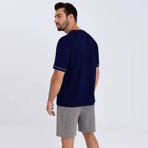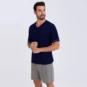 Pijama curto masculino Lupo fabricado em Algodão proporcionando suavidade e respirabilidade. Modelo liso com gola V e tape da gola na cor do short.
