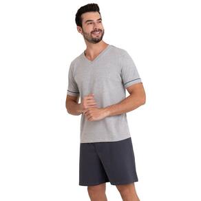Pijama curto masculino Lupo fabricado em Algodão proporcionando suavidade e respirabilidade. Modelo liso com gola V e tape da gola na cor do short.