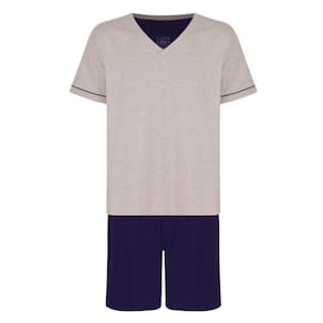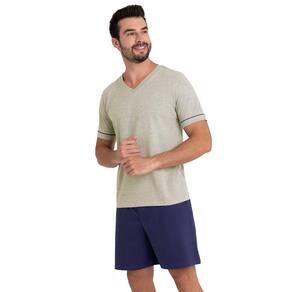 Pijama curto masculino Lupo fabricado em Algodão proporcionando suavidade e respirabilidade. Modelo liso com gola V e tape da gola na cor do short.