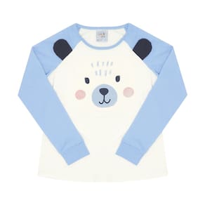 Nosso conjunto de pijama é composto pela blusa e a calça em tecidos meia malha na cor off white com hortênsia. A blusa de manga longa possuí estampa frontal de ursinho com orelhas interativas e a calça com elastano na cintura também possuí estampa de patinhas de urso no joelho. Assim a hora do soninho se torna mais leve, quentinha e alegre!\n