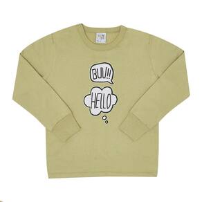 Quentinho e divertido para aquecer os meninos durante a estação. Confeccionado em moletinho, o blusão de manga longa na cor pistache possuí estampa frontal com escrita "buu!" "Hello" e ambas brilham no escuro também. Já a calça possuí estampa rotativa na cor pistache de pequenos fantasmas e seres divertidos além de possuir elastano no cós. \n