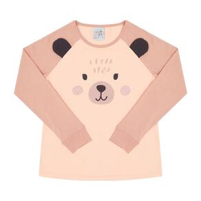 Nosso conjunto de pijama é composto pela blusa e a calça em tecidos meia malha na cor rosa pó com melissa. A blusa de manga longa possuí estampa frontal de ursinho com orelhas interativas e a calça com elastano na cintura também possuí estampa de patinhas de urso no joelho. Assim a hora do soninho se torna mais leve, quentinha e alegre!\n