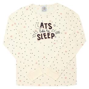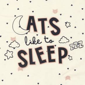 Novo conjuntinho Good Night By Pulla Bulla confeccionado em Meia malha com estampa rotativa de coraçõezinhos, proporcionando ainda mais conforto ao dormir. Uma Blusa na cor Natural com a estampa “Gatos gostam de dormir” e um Calça na cor Natural. Um look confortável e leve para a sua menininha descansar a noite toda.\n